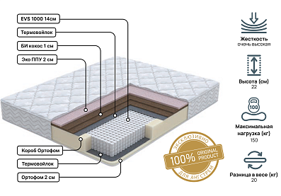 Матрас Status hard plus 160х190 Очень высокая с пружинным блоком