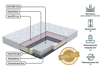 Матрас Royal fantasy Pro 140х200 Низкая с пружинным блоком