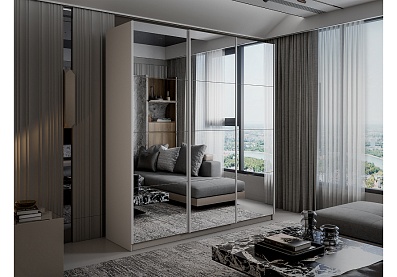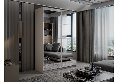 Шкаф-купе Lux 1400х2300х570, зеркальные фасады / Кашемир 140x230 Кашемир , С полками
