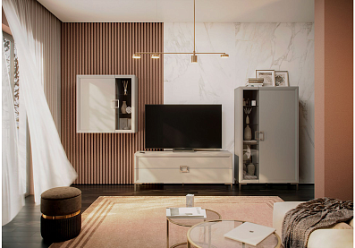 Шкафы-витрины для гостиной являются, как элементом декора, так и функциональной мебелью для хранения различных принадлежностей. За счет стеклянного фасада открывается обзор на содержимое шкафа. Это позволяет расставить красивую посуду, редкие сувениры, памятные вещи и другие интересные предметы, подчеркивая интерьер комнаты.