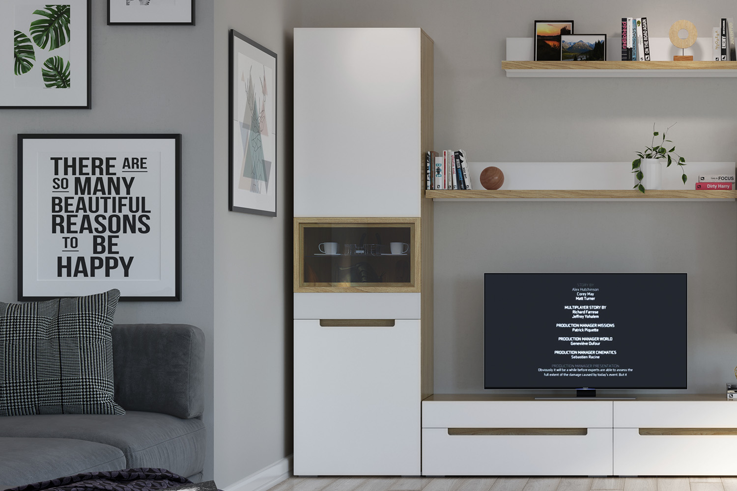 – описание: стиль современный, минимализм, размер 213.2x60.1x41.6 см, цвет швейцарский вяз, белый, назначение для гостиной.