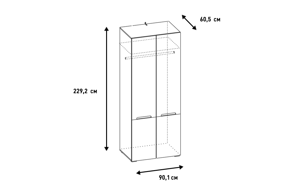 – описание: назначение для одежды, размер 229.2x90.1x60.5 см, цвет швейцарский вяз, белый, стиль современный, минимализм.