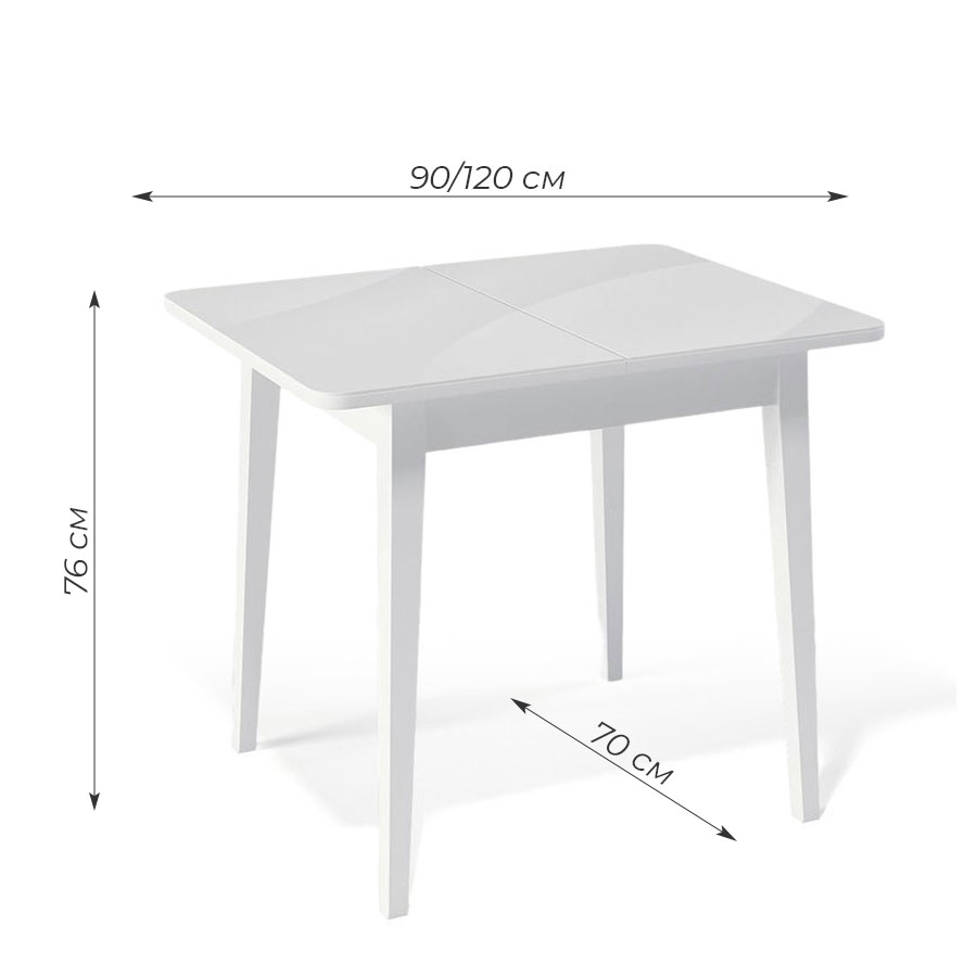 Стол обеденный Орпен квадратный раздвижной 900М опоры белые, столешница - стекло белый сатин.