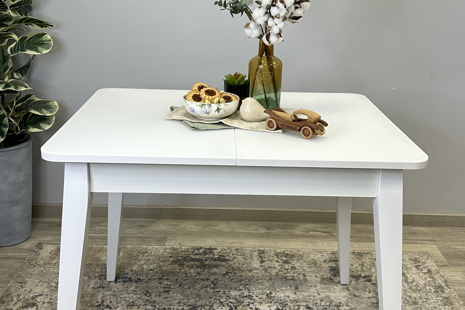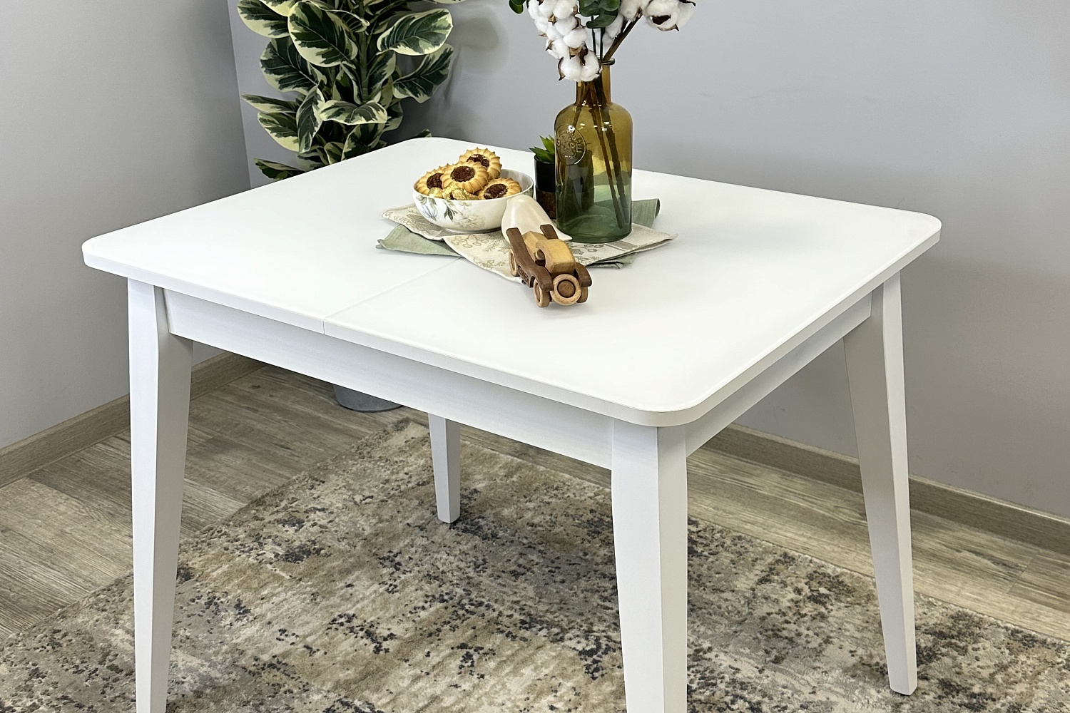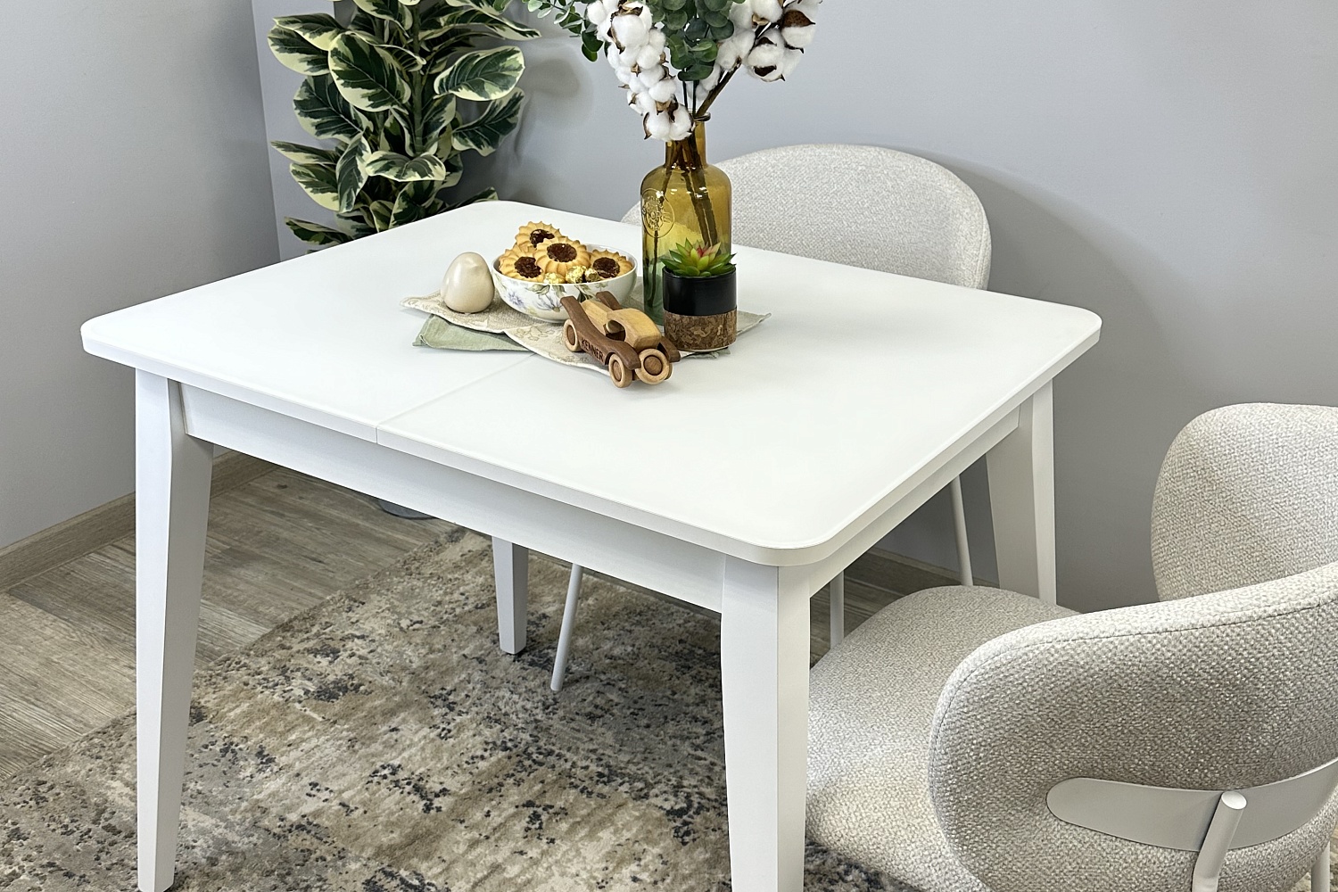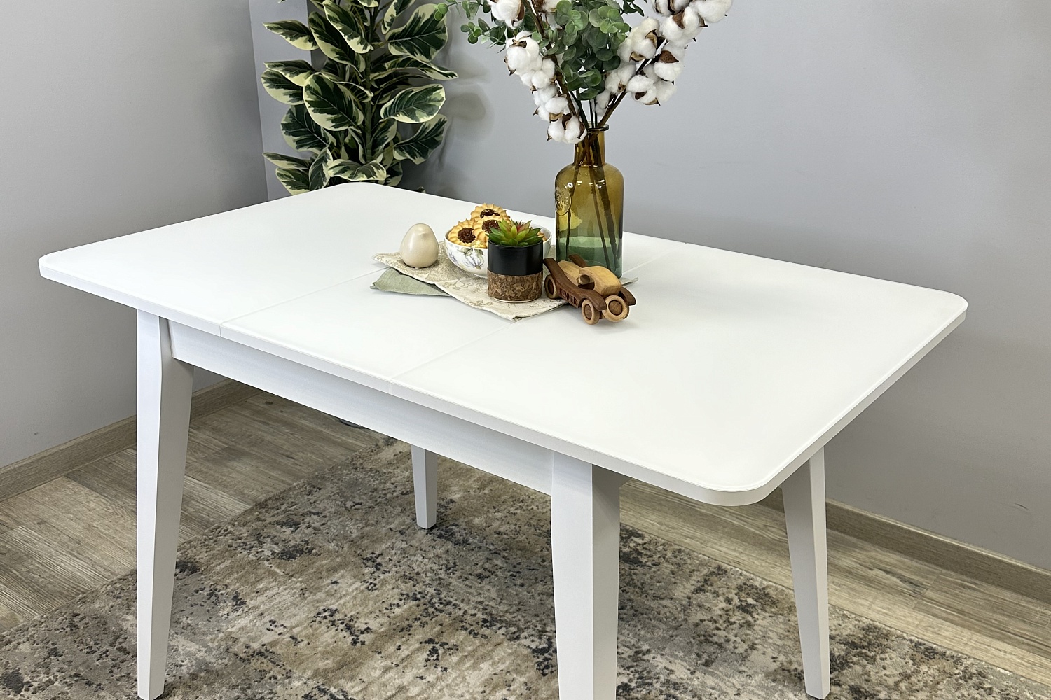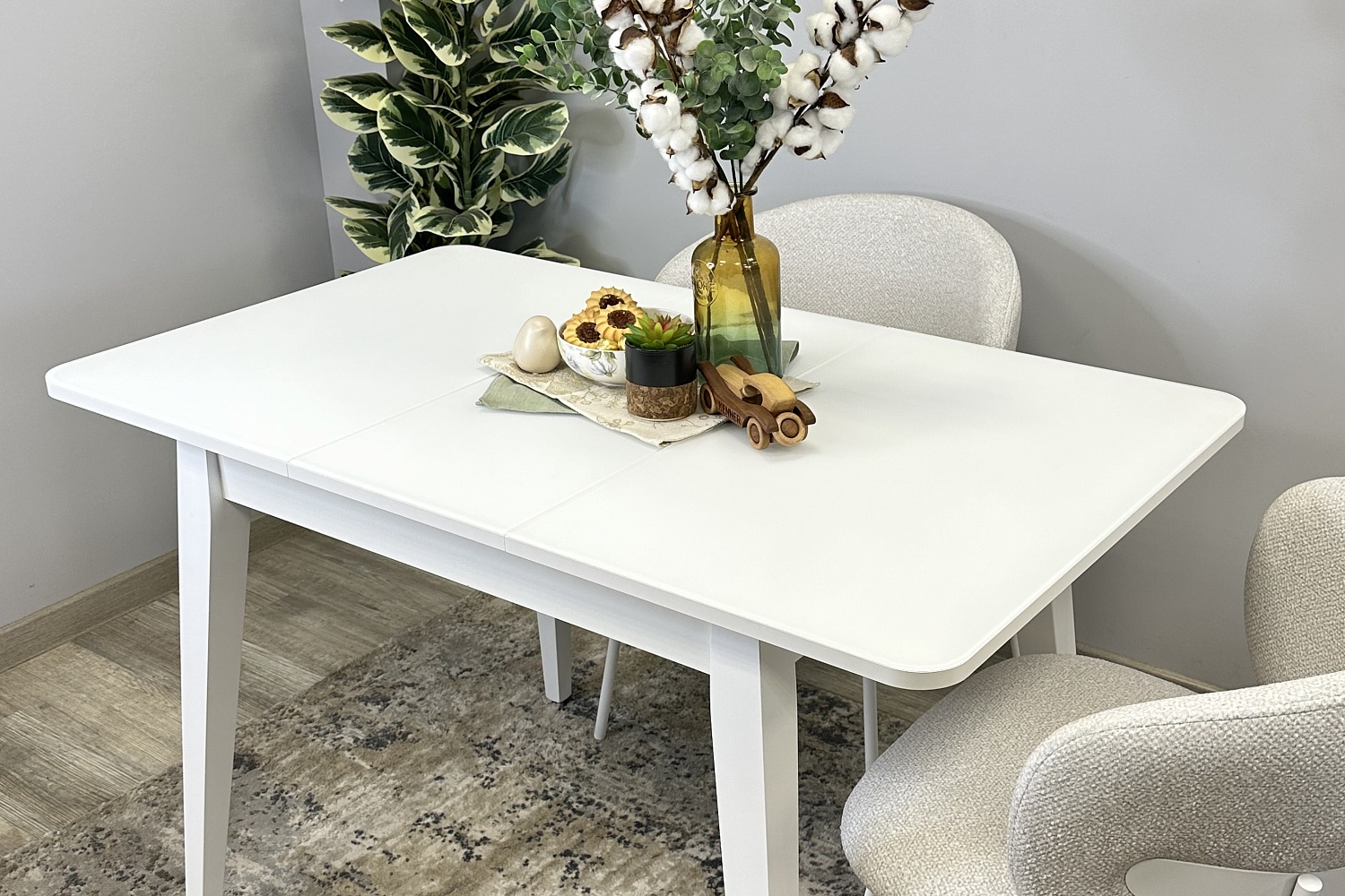Размер стола компактный и в то же время достаточно вместительный для ежедневного использования 4 человек, по каждой стороне достаточно места чтобы поставить 4 широких стула вокруг стола. Механизм раздвижения со стеклянной вставкой позволяет комфортно посадить еще 2 гостей. Компактный и очень функциональный стол, идеален для использования как на небольшой кухне, так и в качестве уютной обеденной зоны в гостиной.