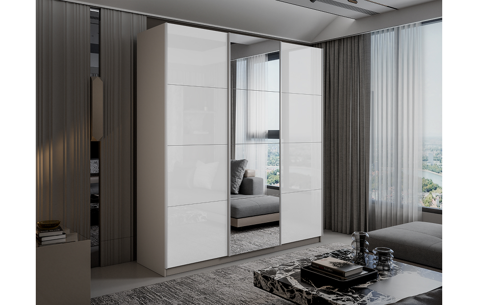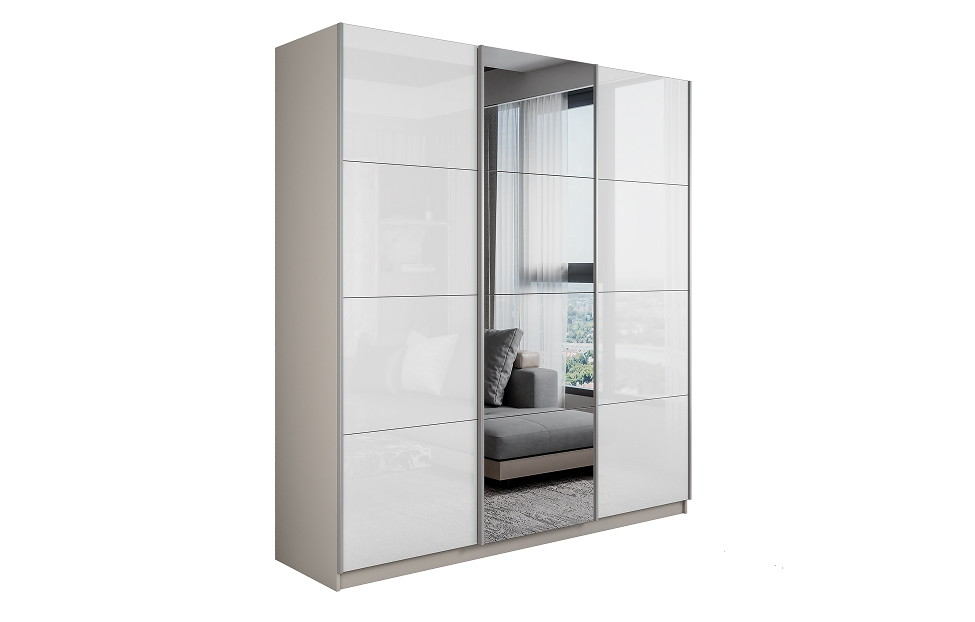 Цена на Шкаф-купе Lux 210х230х57 кашемир Белый глянец/Зеркало/Белый глянец от производителя , отличный выбор!