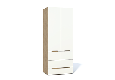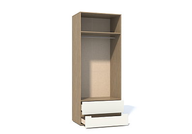 Шкаф Анри АН-200.09 с полкой, штангой для одежды и двумя выдвижными ящиками Швейцарский вяз, Белый