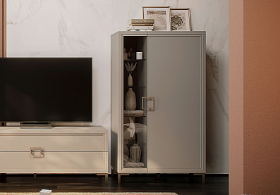 Шкаф Дольче со стеклянными полками (4 шт.) и полкой ЛДСП Кашемир серый